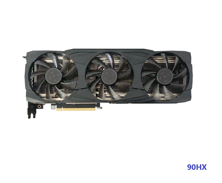 $The CMP 90HX is a professional graphics card by NVIDIA, launched on July 28th, 2021. Built on the 8 nm process, and based on the GA102 graphics processor, in its GA102-100-A1 variant, the card supports DirectX 12 Ultimate. The GA102 graphics processor is a large chip with a die area of 628 mm² and 28,300 million transistors. Unlike the fully unlocked GeForce RTX 3090 Ti, which uses the same GPU but has all 10752 shaders enabled, NVIDIA has disabled some shading units on the CMP 90HX to reach the product's target shader count. It features 6400 shading units, 200 texture mapping units, and 80 ROPs. Also included are 200 tensor cores which help improve the speed of machine learning applications. The card also has 50 raytracing acceleration cores. NVIDIA has paired 10 GB GDDR6X memory with the CMP 90HX, which are connected using a 320-bit memory interface. The GPU is operating at a frequency of 1500 MHz, which can be boosted up to 1710 MHz, memory is running at 1188 MHz (19 Gbps effective). Being a dual-slot card, the NVIDIA CMP 90HX draws power from 2x 8-pin power connectors, with power draw rated at 320 W maximum. This device has no display connectivity, as it is not designed to have monitors connected to it. CMP 90HX is connected to the rest of the system using a PCI-Express 4.0 x16 interface. The card measures 285 mm in length, 112 mm in width, and features a dual-slot cooling solution.